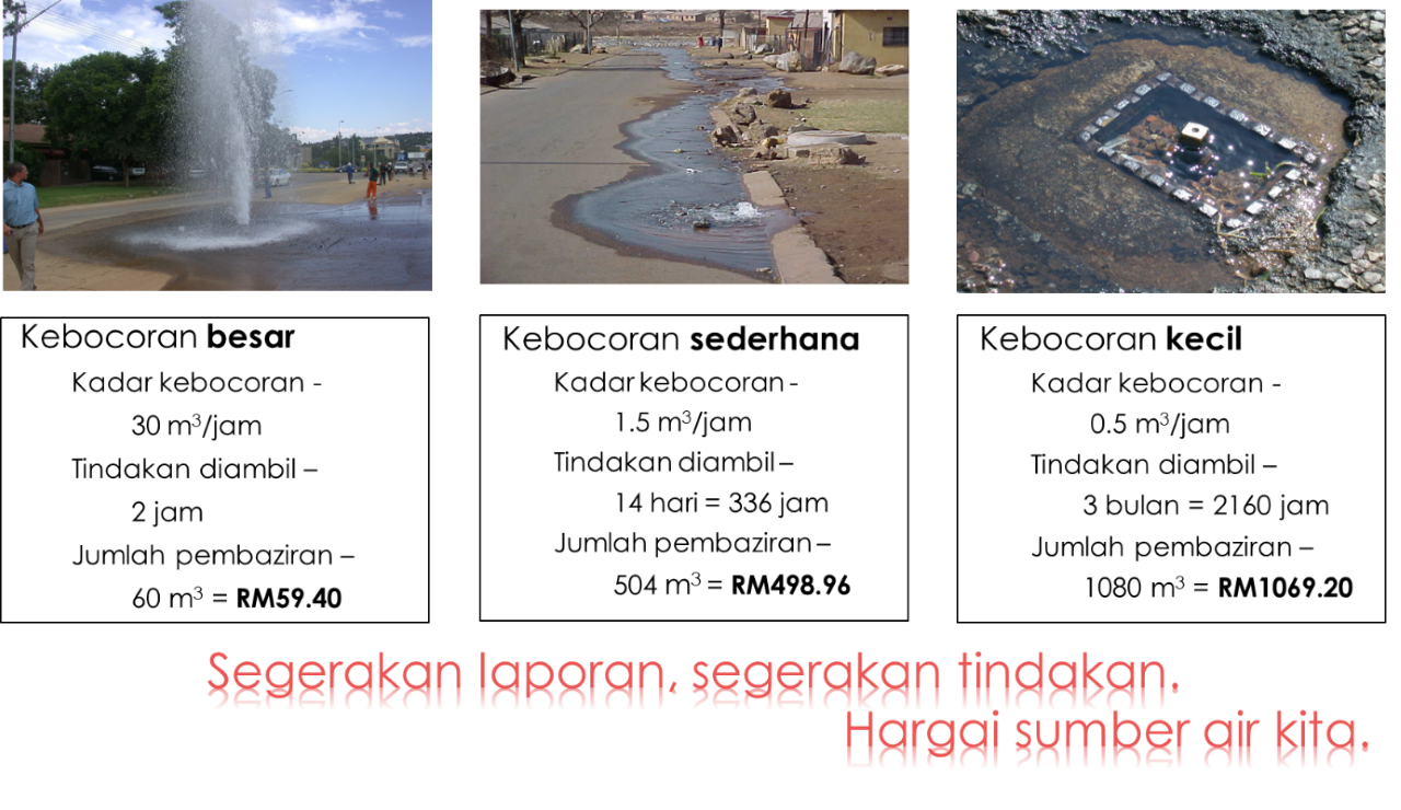 Kebocoran yang kecil jika dibiarkan berlarutan boleh memberi kesan pembaziran yang lebih buruk berbanding kebocoran besar yang segera diperbaiki.