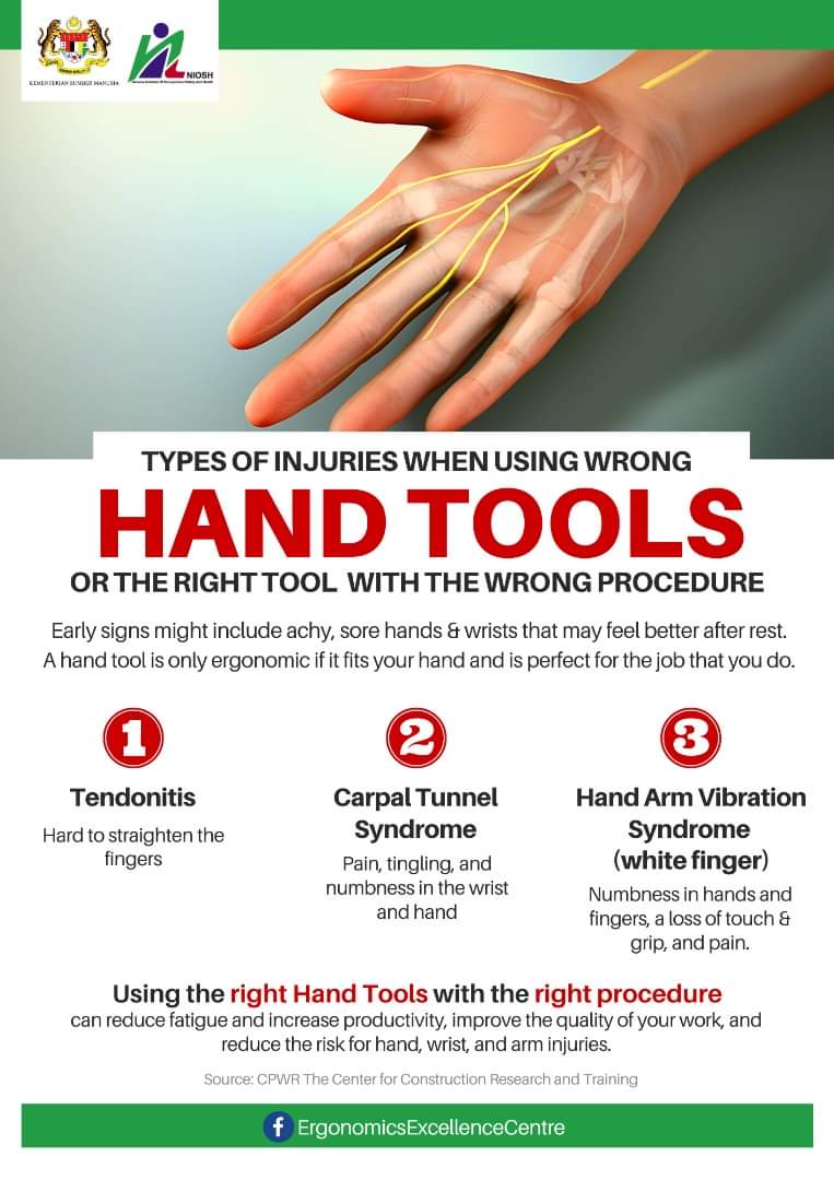 INFO KESELAMATAN PEKERJAAN : "TYPES OF INJURIES WHEN USING WRONG HAND TOOLS OR THE RIGHT TOOL WITH THE WRONG PROCEDURE"